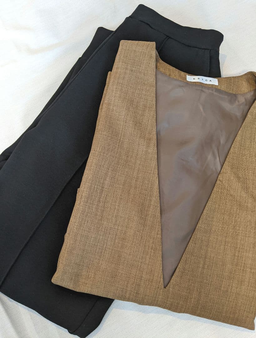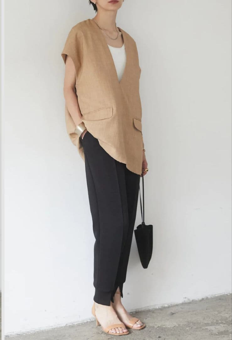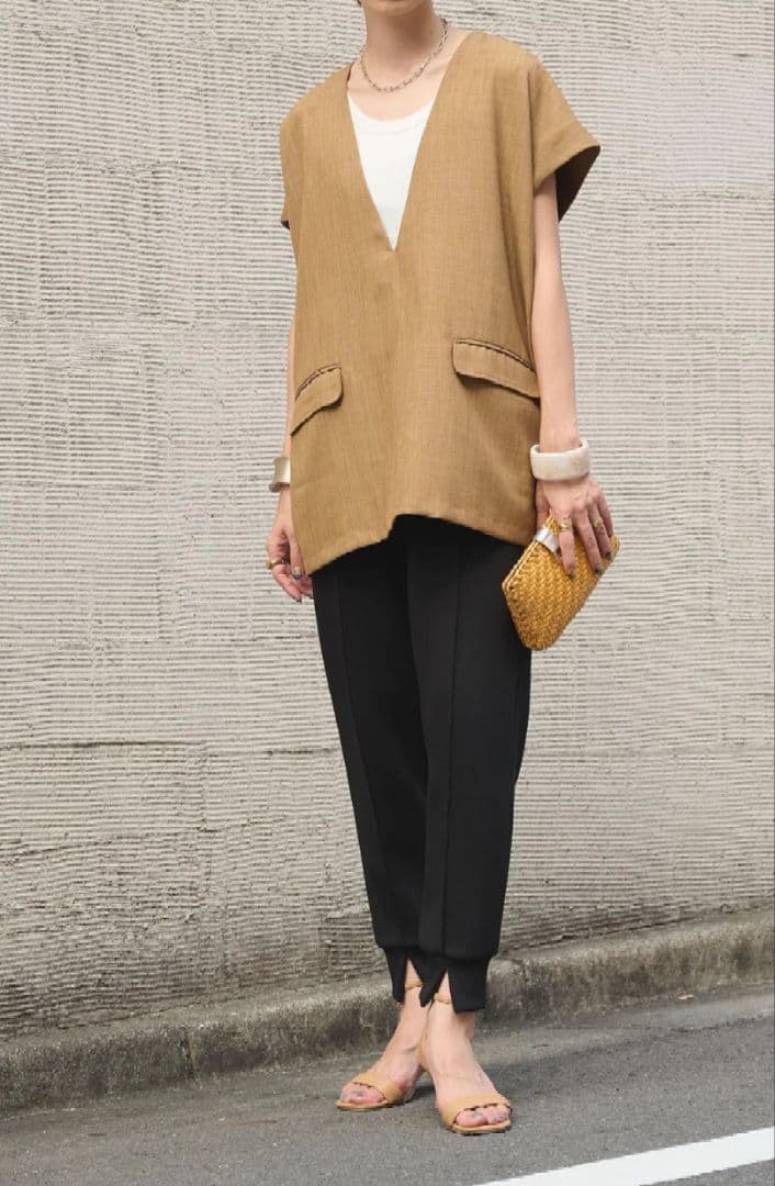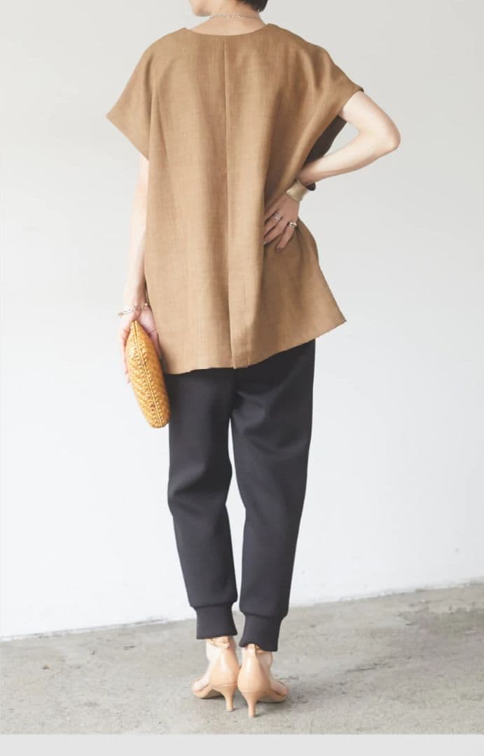 【売り切り御免!】 ESICA【麻タッチ深Vネックプルオーバー+ライトダンボールジョガーパンツ シャツ/ブラウス(半袖/袖なし)