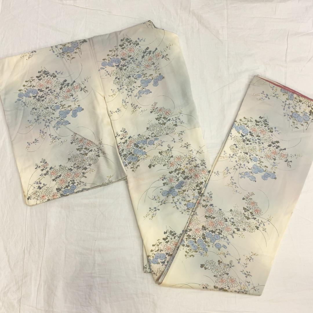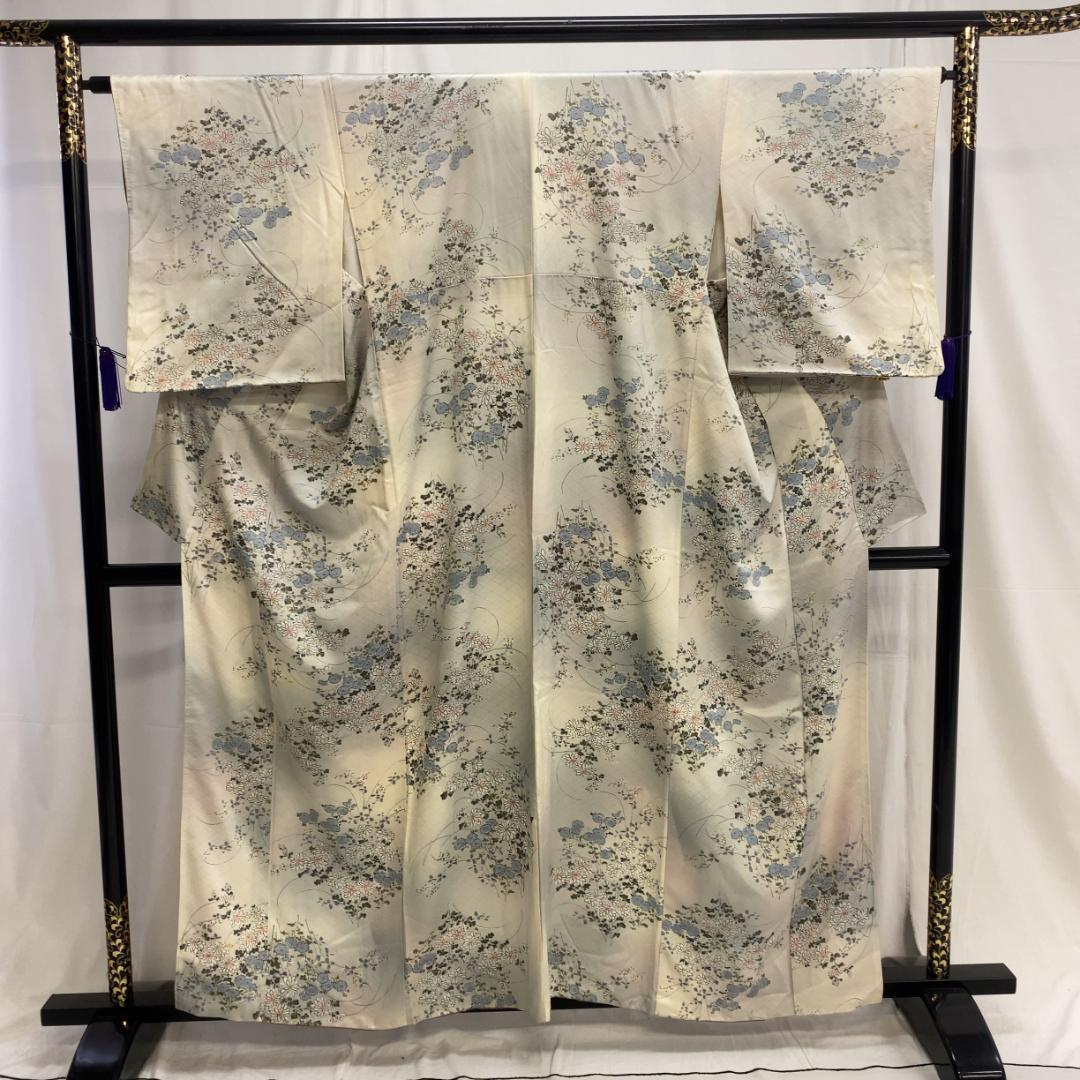 【感謝価格】 【2140】着物 小紋 袷 正絹 菊 地紋入り 単品販売♪ 着物